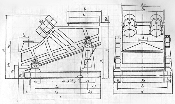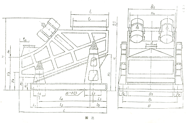ZSG系列單層高效重型振動篩的外形及安裝尺寸見圖一、表二。